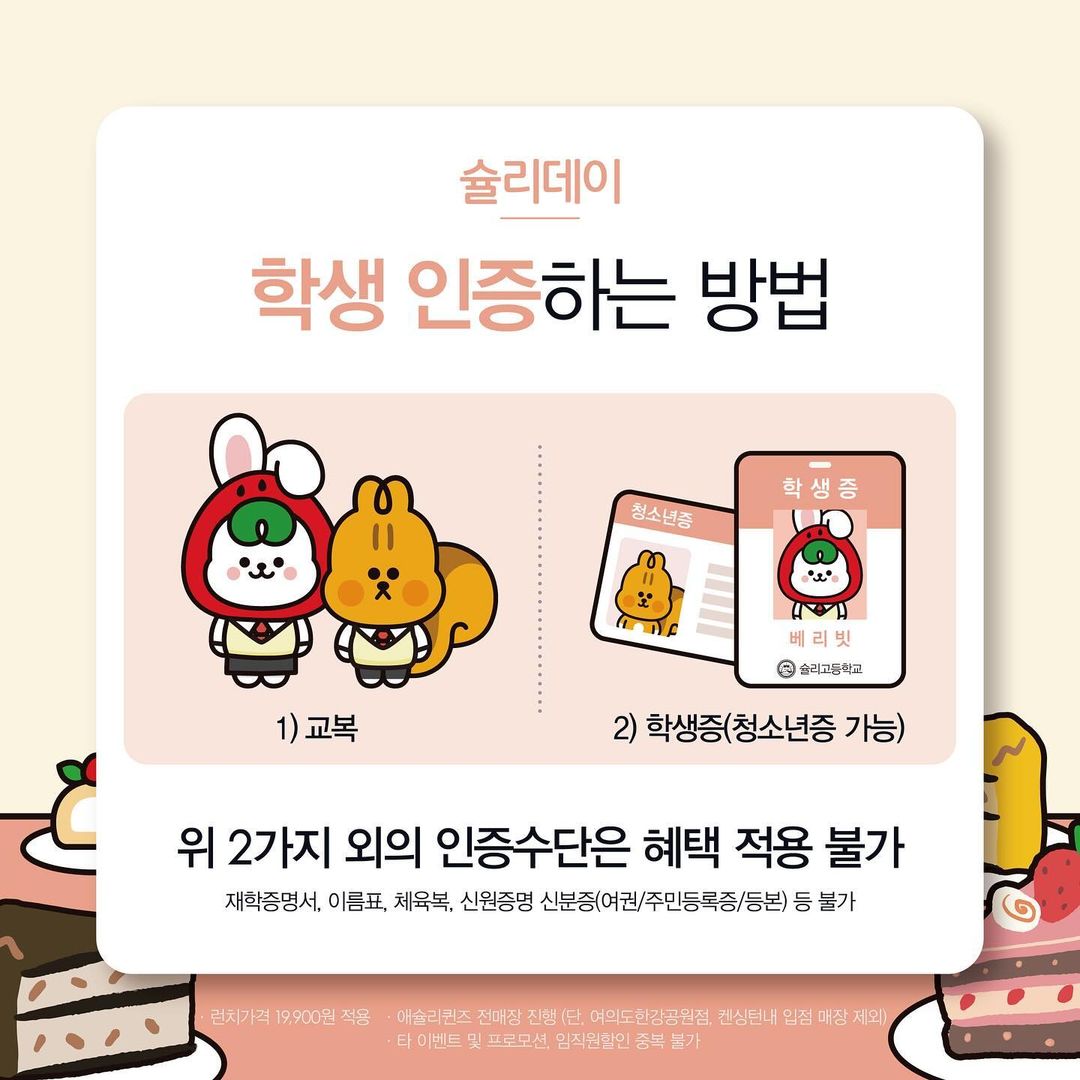 인증방법은 교복, 학생증 단 2가지 방법으로만 할인이 가능합니다.
