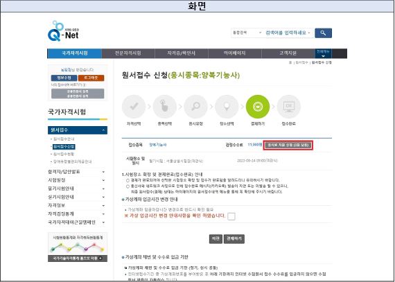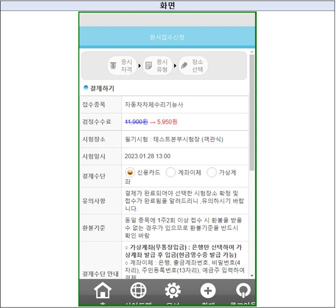 응시료 신청화면(모바일)