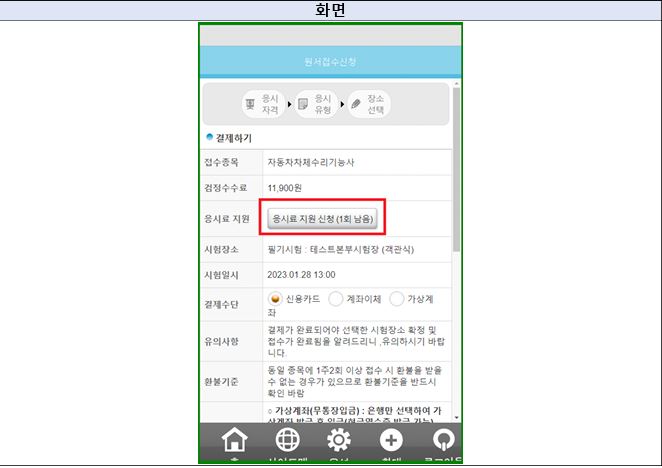 1. 최종 결제 전 응시료 지원 신청 여부 선택