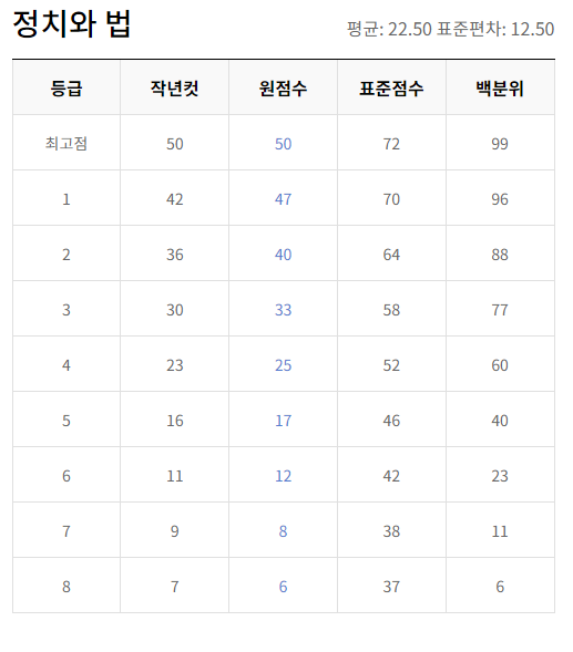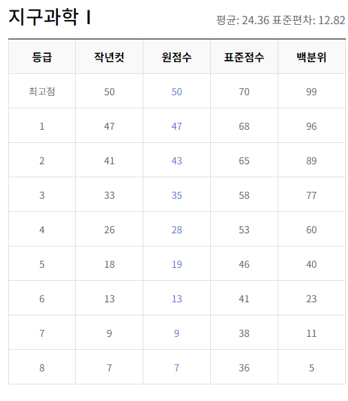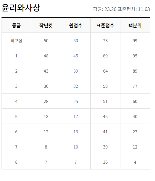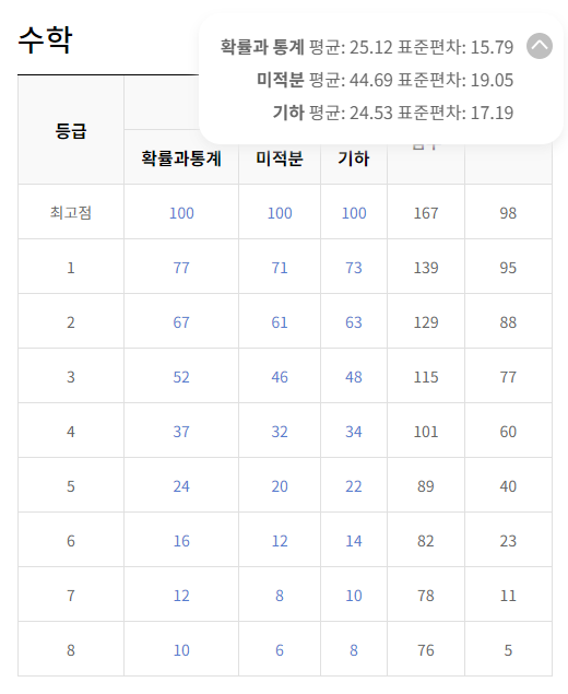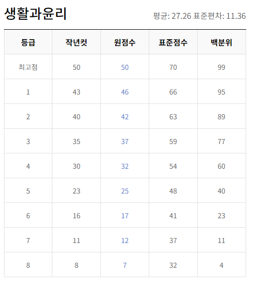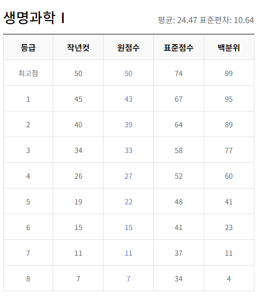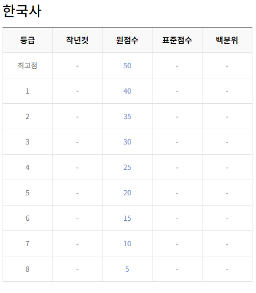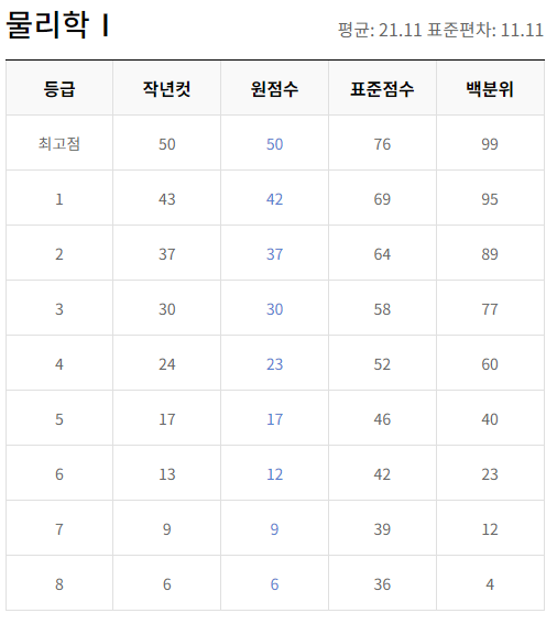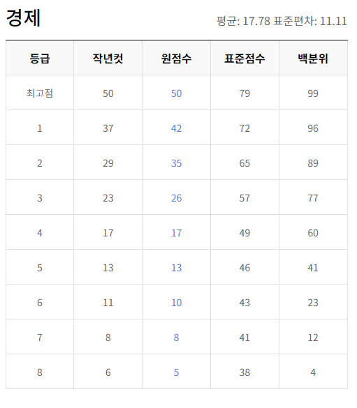 아래에는 이번에 시험본 과목들의 등급컷을 안내해드리겠습니다.
